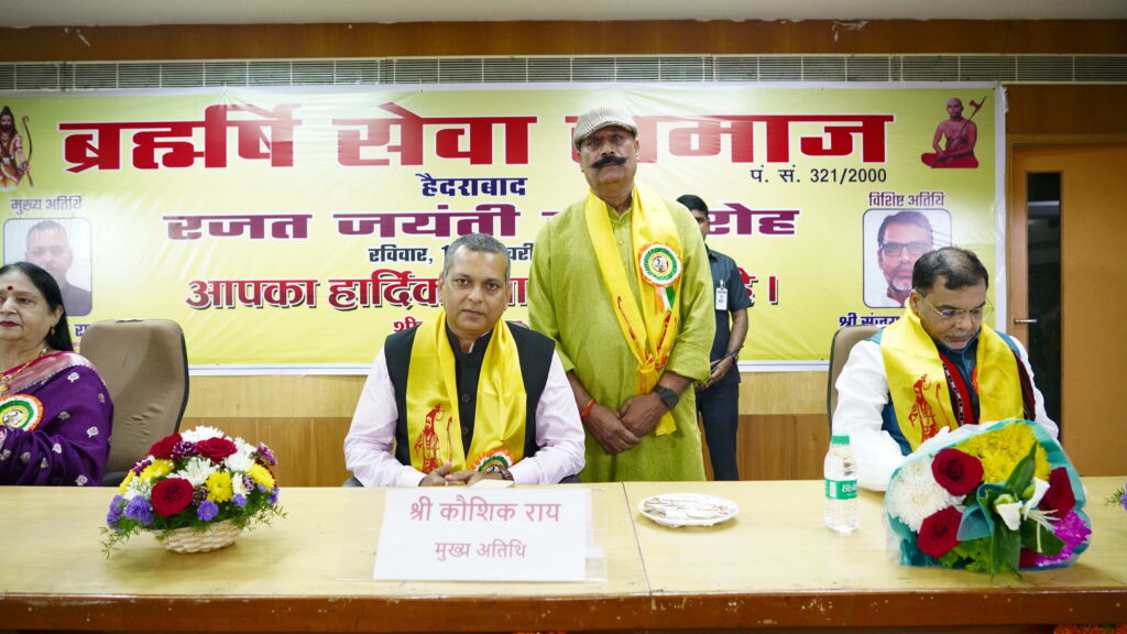 Hyderabad: The silver jubilee celebration of Brahmarshi Seva Samaj Hyderabad concluded with grandeur at the NIMSME Auditorium in Yusufguda. Assam Cabinet Minister Shri Kaushik Rai graced the occasion as the Chief Guest, while Wrestling Federation of India President Shri Sanjay Kumar Singh attended as the Special Guest. The event, attended by Brahmarshi expatriates residing in Hyderabad for decades, showcased cultural performances, music, and a colorful atmosphere, emphasizing unity and brotherhood within the community.