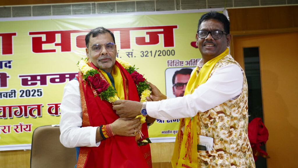 Distinguished guests honored senior members of the Brahmarshi community, including Shri Nand Kishore Singh, Smt. Premlata, Shri Shyam Sundar Chaudhary, Shri Ram Surima Sharma, Smt. Vimla Devi, and Shri Navlesh Sharma. Prominent members such as ITC’s retired senior officer Rajnikant Rai, industrialist Sanjeev Mishra, Colonel Aman Tyagi, Lieutenant Colonel Prashant Kumar, Dr. Priyanka Roy, NMDC DGM Kaushlesh Narayan Singh, Bhupendra Rai, and educators Kavita Tyagi and Manju Pandey were also felicitated. Former President of Brahmarshi Seva Samaj, Shrikant Chaudhary, attended the event.
