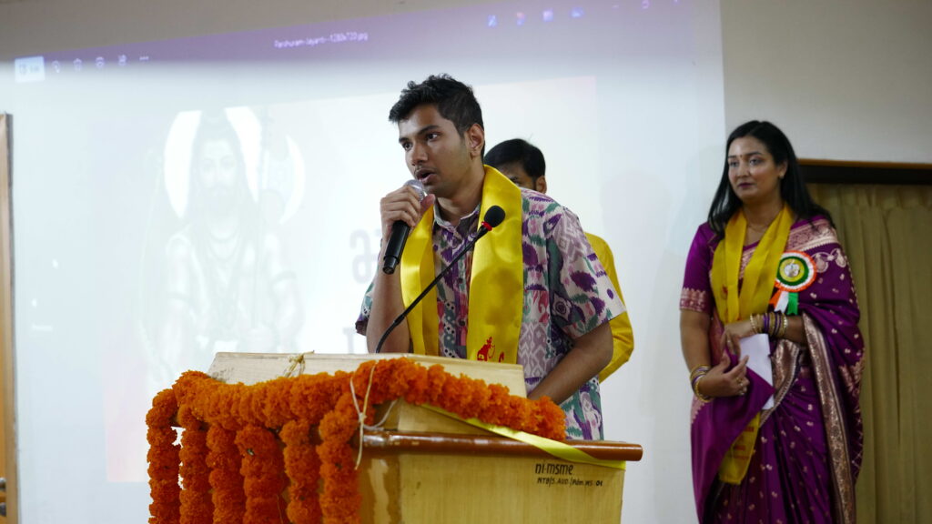 The main event began with the ceremonial lighting of the lamp by Minister Kaushik Rai, Special Guest Sanjay Kumar Singh, and President Indira Roy. Floral tributes were paid to the deities, Lord Parshuram and the revered saint Swami Sahajanand Saraswati, amidst Sanskrit hymns recited by Pallavi. Author Manorama welcomed the guests with a poetic speech.