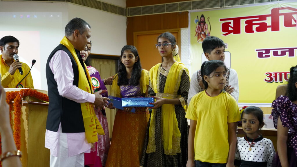 Chief Guest Kaushik Rai and Special Guest Sanjay Kumar Singh awarded talented and meritorious students of the Brahmarshi community. Harshvardhan Singh was congratulated for excelling in the NEET exam and securing admission to the prestigious Gandhi Hospital. Other achievers, including Pratyush, Shreyas Kumar, Palak, Hemashree, Jayashree, and Nitya Kumari, were also recognized for their academic excellence.