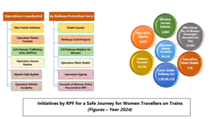 - “Meri Saheli” Initiative – This special initiative ensures the safety of women traveling alone. RPF women officers interact with female passengers during their journey and provide assistance and security.