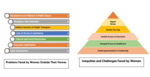 In public spaces, women continue to encounter harassment, gender bias at workplaces, cyberbullying, and inadequate sanitation facilities. These challenges not only restrict their mobility but also hinder their social and economic participation.