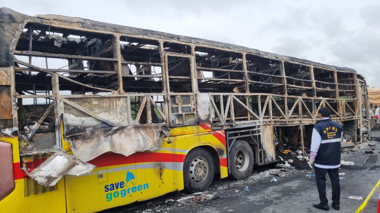 Hyderabad: A devastating bus fire in Kurnool has claimed at least 25 lives, leaving families and communities in deep mourning. The accident occurred on National Highway 44 near Chinnatekuru village when a high-speed motorcycle collided with a passenger bus, causing the bus’s fuel tank to explode. Among the 44 passengers onboard, many were asleep and caught unaware in the flames. A few survivors managed to break windows and flee, while others tragically could not escape.