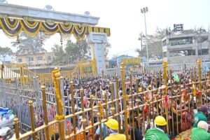 Despite the unprecedented crowd, the meticulously planned arrangements by the administration ensured smooth movement of pilgrims and hassle-free darshan. Effective crowd management, traffic regulation, sanitation, medical services, and security measures drew widespread appreciation from devotees, making the third day a testimony to efficient governance and careful planning.