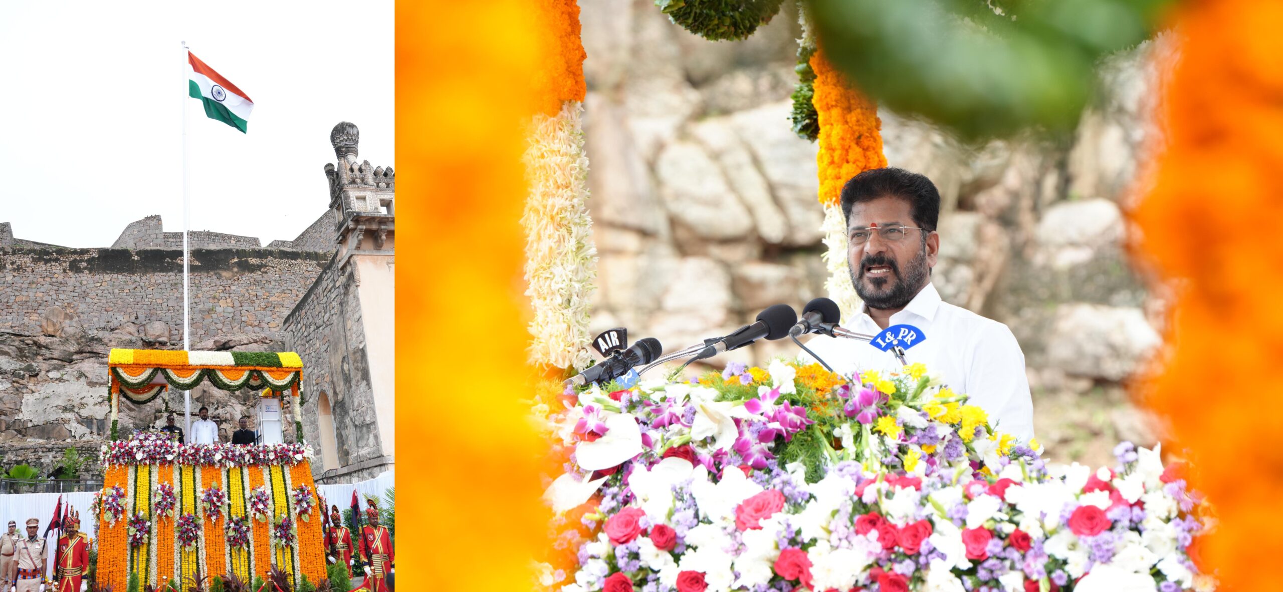 Hyderabad, August 15: Telangana Chief Minister A. Revanth Reddy delivered a powerful Independence Day address at the historic Golconda Fort, declaring that his government will not rest until Telangana emerges as the world’s number one state, overcoming its current financial burdens. Emphasising the proverb “Where there is a will, there is a way”, the CM asserted that his administration possesses both the determination and the vision to transform the state from ground zero to the highest peaks of progress.