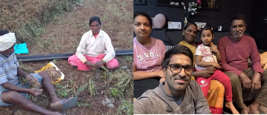 The heart-touching video shows Sanjeeva’s parents, who had spent their entire lives in a small Telangana village, embarking on their first air journey and reuniting with their son’s family abroad. The clip begins with serene scenes from their village — the couple sitting amid green fields — and transitions to their radiant smiles in the UK as they meet their son, daughter-in-law, and grandchild.