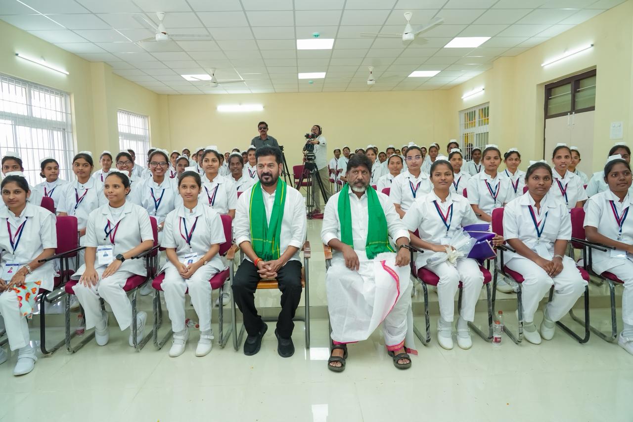To help nursing students access better global employment opportunities, the Chief Minister announced that the State Government will provide structured language training facilities in Japanese, German and Korean. These facilities will cater to nursing students across Telangana, including those studying at Yedulapuram Nursing Colleges in Khammam district. The initiative aims to equip students with internationally relevant skills and improve their chances of placement in foreign healthcare institutions.