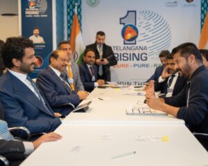 The meeting was attended by D. Sridhar Babu, Ponguleti Srinivas Reddy, and senior officials, underscoring the Telangana government’s commitment to translating global engagements into concrete investments and partnerships.