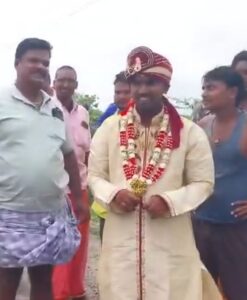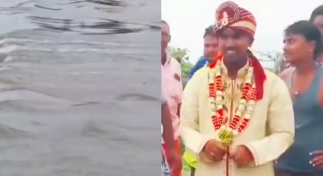 While some balanced the groom, others ensured his shoes, mobile phone, and wedding attire remained safe and dry. Finally, after nearly four hours of delay, the groom reached the wedding venue, much to the relief of the bride’s family.